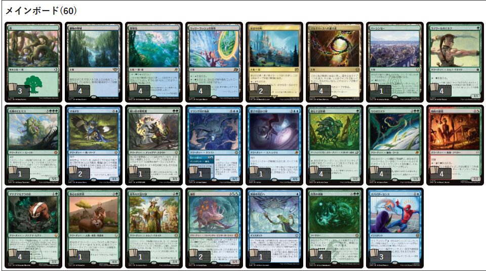 MTG専門店の「晴れる屋」さんのデッキ検索から引っ張ってきたシミックウロボロイドというデッキのリストになります。青緑のデッキということで土地「繁殖地」を4枚採用していますが、この「繁殖地」1枚約1,200円です。4枚使ったらこれだけで約5,000円。